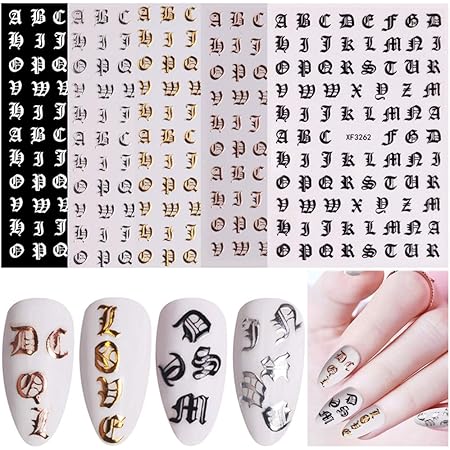 Amazon Com Letter Nail Art Stickers 5 Colors Letter Words Old English Alphabet Nail Decals Gummed Character Nail Adhesive Sticker Nail Design Decorations Acrylic Nails Art Manicure Tips Charms Beauty