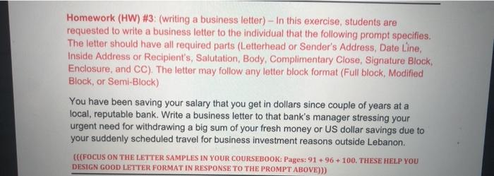 Homework Hw 3 Writing A Business Letter In Chegg Com