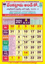 Telugu Gantala Panchangam 2021 May. Venkatrama Co Telugu Calendar 2021 Single Colour and Multi Colour with Tithi Timings Nakshatram Timings Other Panchangam information for all days in the year 2021Venkatrama Co Telugu Rasi Phalalu 2021 are also printed at the back side of calendar. 12 Months with Festivals Holidays.